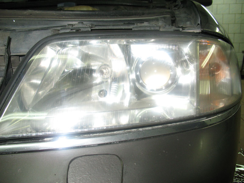 Состояние фар автомобиля, особенно в зимний период, непосредственно влияет на безопасность движения. Исследования показали, что даже припыленная фара снижает прохождение света на 10-15%. А при таком состояние фары, как на фотографии эта цифра может превысить порог в 30-40%. Такая степень повреждения является критической. Стоял вопрос о замене фар. Результат полировки фар, безусловно, превзошел ожидания владельца автомобиля. Важно и то, что стоимость такой работы около 20 у.е., а стоимость новой фары около 200 у.е.